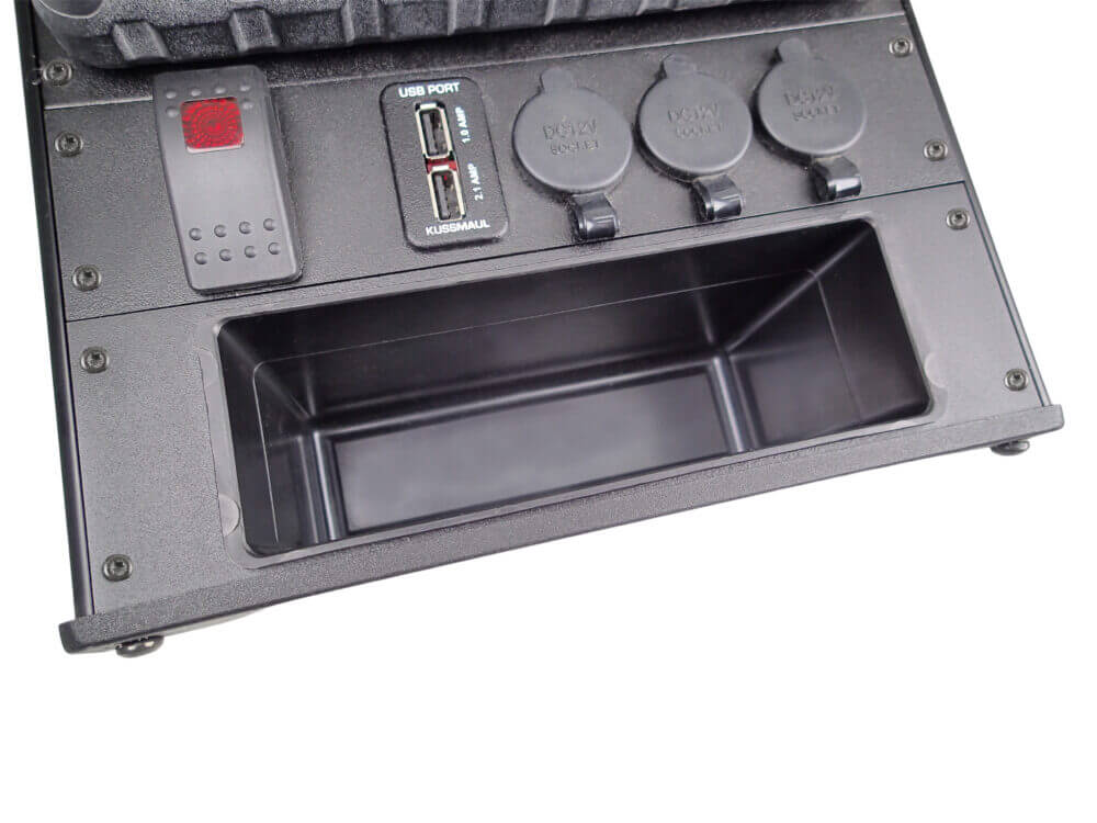 • 3″ Accessory Pocket w/Hinged Lid & Lock, 2.5″ Deep