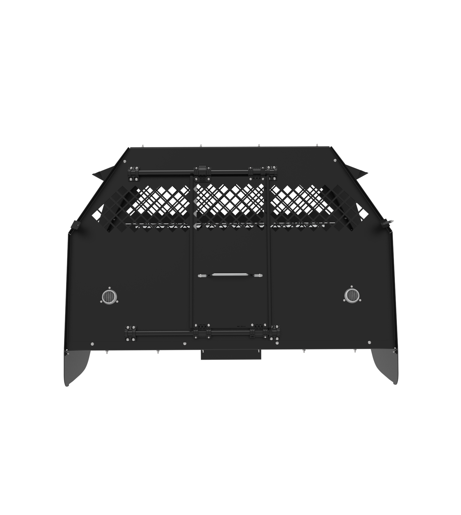 • Kit housing with one front sliding door, aluminum door panels and fold-down interior window guards